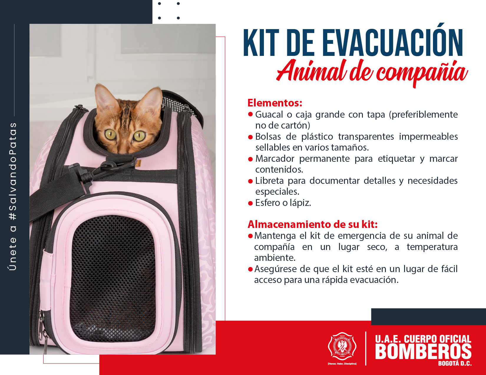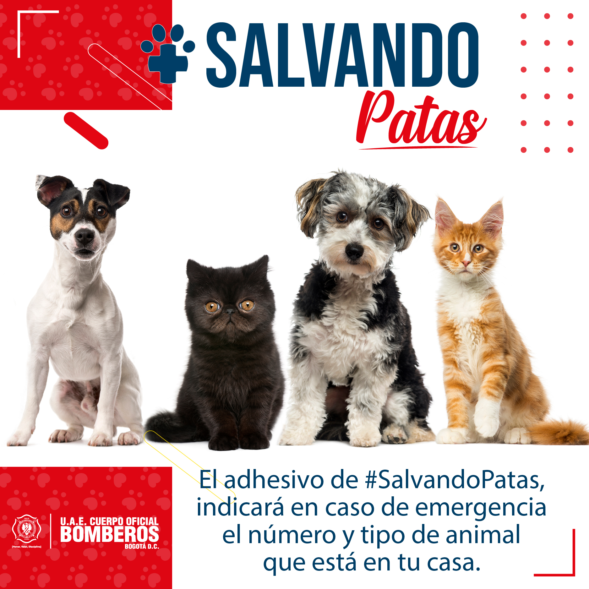 En Bogotá, en promedio se presentan 806 incendios estructurales al año, los cuales pueden conllevar a la pérdida de bienes o vidas y, en muchas de las ocasiones, son nuestros animales de compañía los que salen más perjudicados, siendo los más vulnerables, llevándolos a esconderse para salvaguardar su integridad, por lo que los bomberos no logran identificar la ubicación de estos seres con facilidad.